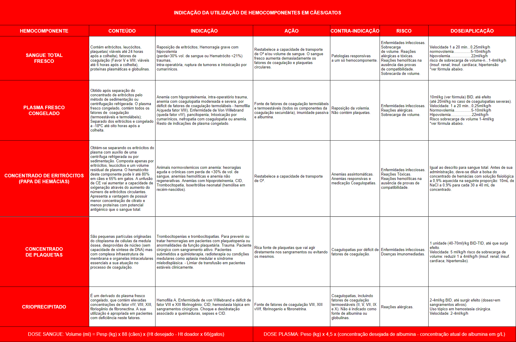 Para a substituição dos fatores de coagulação (por exemplo, intoxicação por rodenticidas) a dose é de 10 a 30 ml/kg.
